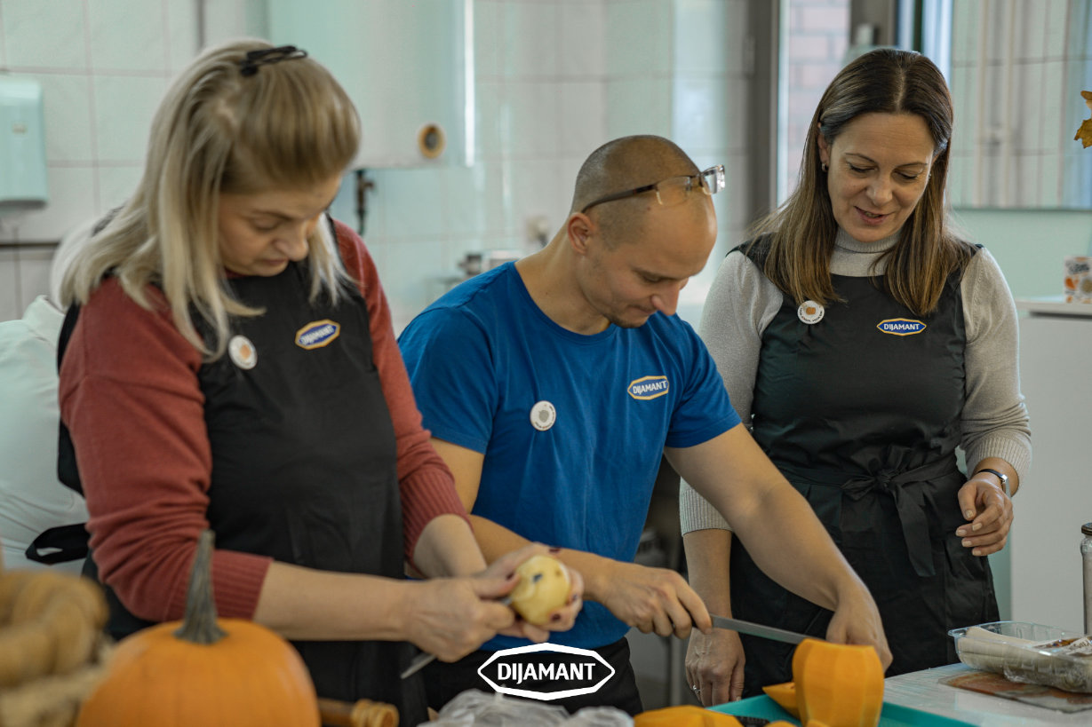 Tokom radionice, učesnici su imali priliku da kroz praktičan rad otkriju koliko je bundeva svestrana i inspirativna namirnica – od slanih jela i kremastih čorbi, do ukusnih jesenjih poslastica, pripremljenih uz neizostavne Dijamant proizvode.